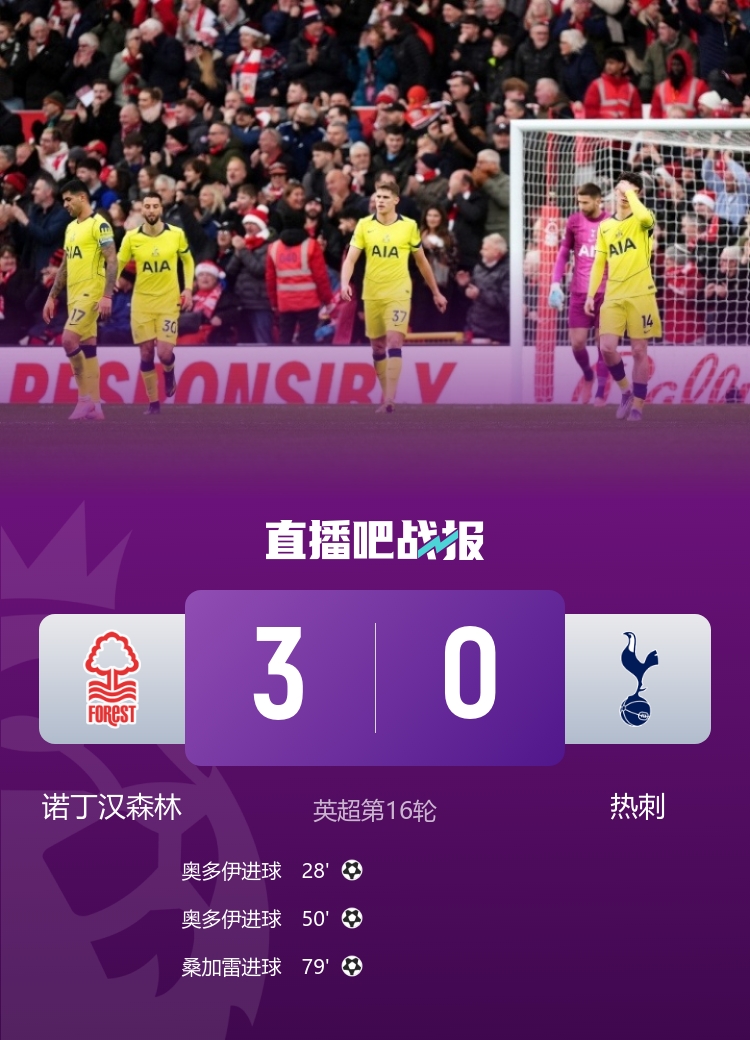 热刺0-3惨败于森林队 联赛近7轮仅获1胜 奥多伊2射1传 格雷失误送礼_英超直播