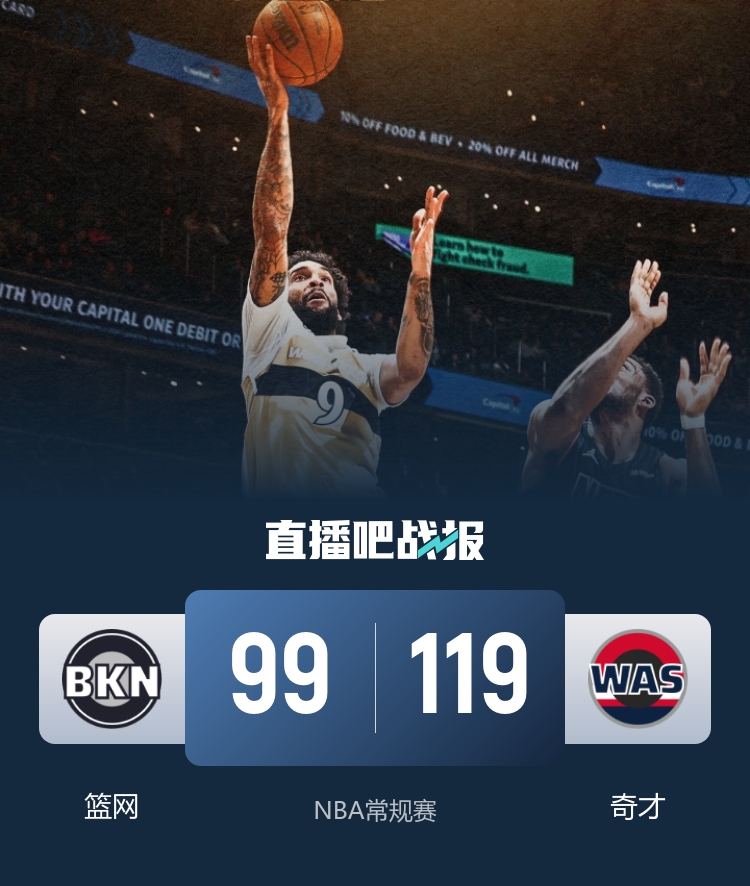 奇才让篮网遭遇三连败 萨尔表现抢眼贾斯汀·尚帕尼也不甘示弱_NBA直播