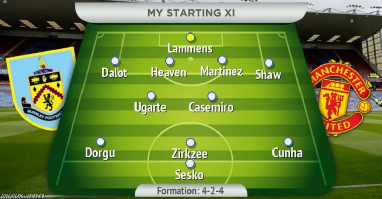 据《曼彻斯特晚报》预测,曼联对阵伯恩利的首发阵容如下:拉门斯;达洛特、海文、利桑德罗·马丁内斯、卢克·肖;乌加特、卡塞米罗;多尔古、齐尔克泽、库尼亚;舍什科。希望这支球队能在弗莱彻的带领下重回胜利的轨道。
