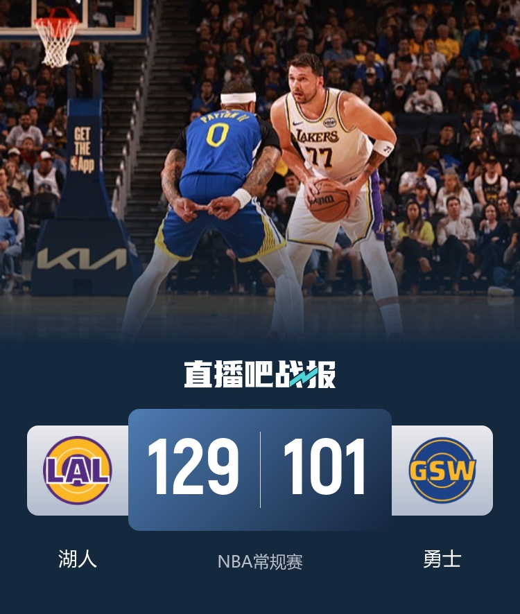 湖人以28分的优势战胜勇士结束三连败 詹姆斯贡献22分7个篮板9次助攻 东契奇在生日夜得到26分_NBA直播